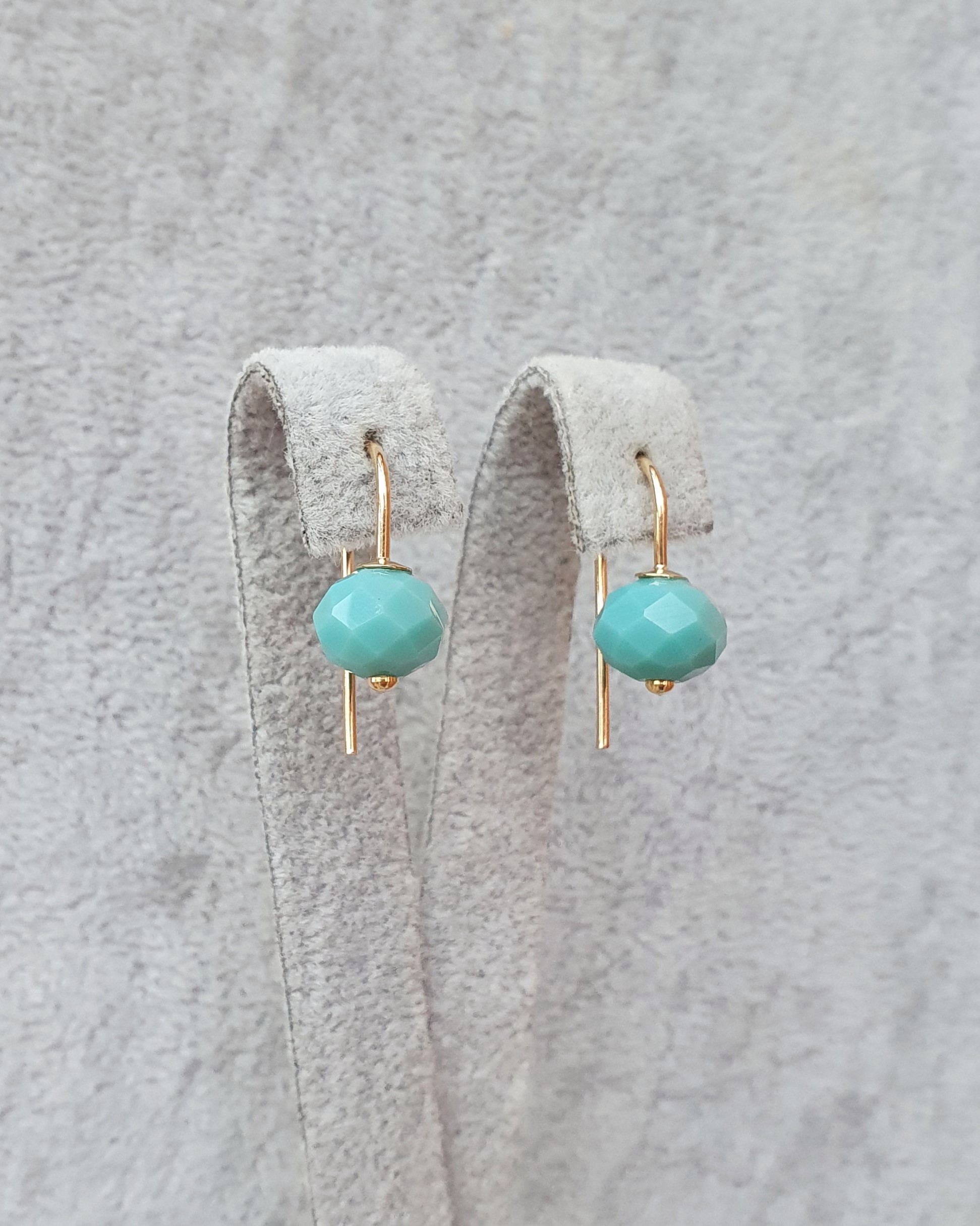 Esse brinco traz uma pedra natural de howlita turquesa facetada em um design minimalista e elegante, perfeito para o dia a dia ou para complementar produções mais sofisticadas.