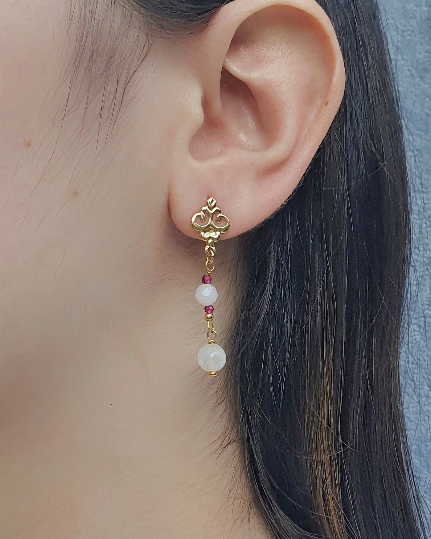 Brinco Quartzo Rosa com Detalhes Folheados a Ouro 18k