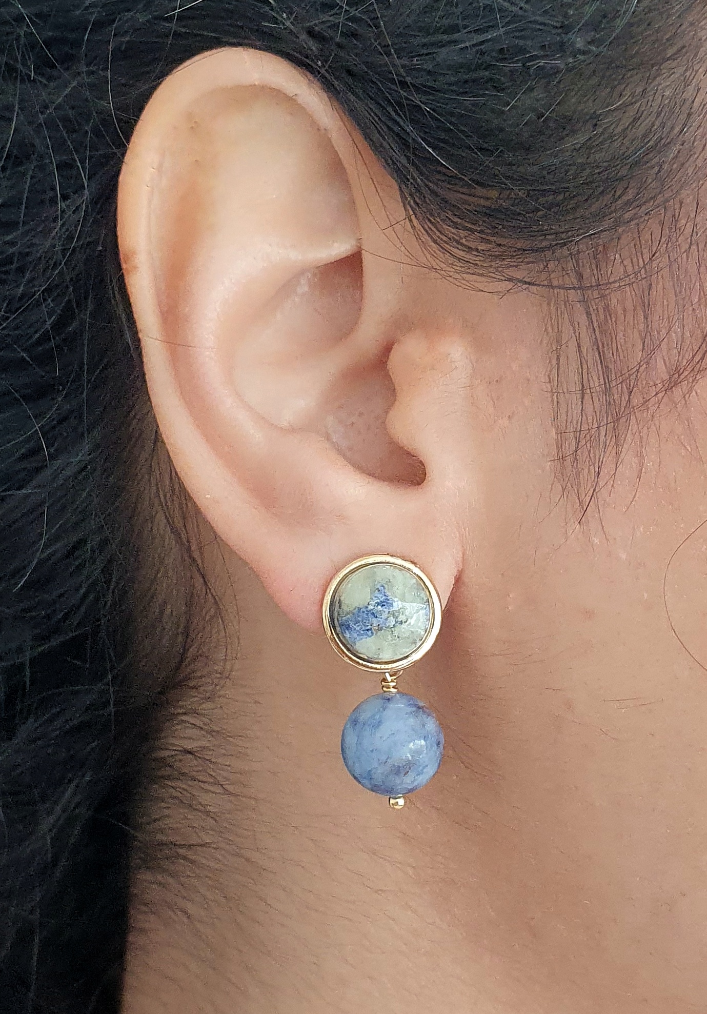 O brinco Sublima é a expressão da sofisticação delicada em sua forma mais elegante. Com design atemporal e detalhes cuidadosamente trabalhados, ele apresenta uma base em pedra sodalita e uma segunda pedra pendente que adiciona movimento e charme à peça. Toda a estrutura é banhada a ouro 18k, criando um contraste refinado com o tom azul profundo característico da sodalita. Versátil e sofisticado, é a escolha perfeita para iluminar o visual com elegância em qualquer ocasião.