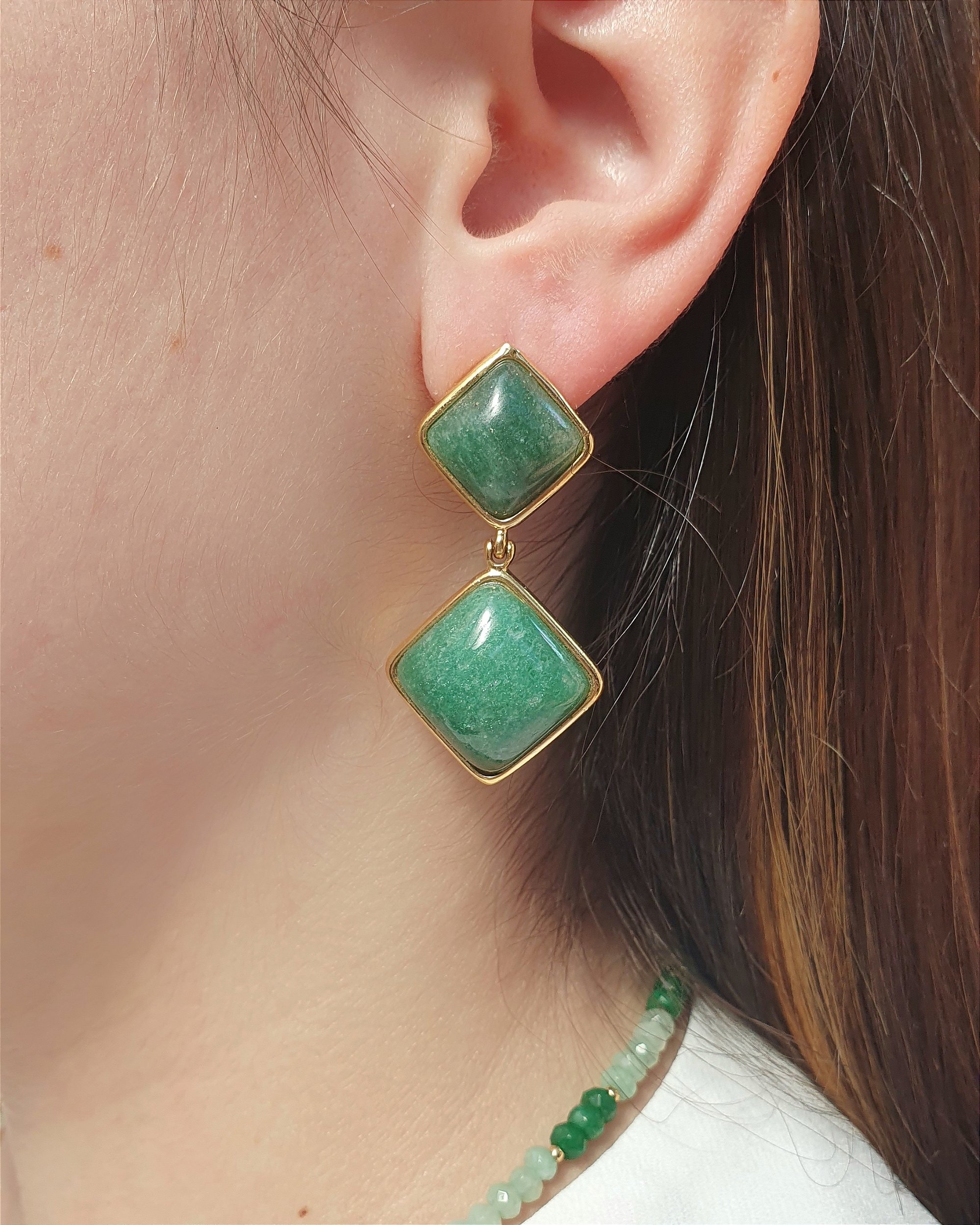 Brinco de Quartzo Verde Natural com Banho Dourado – Elegância e Energia