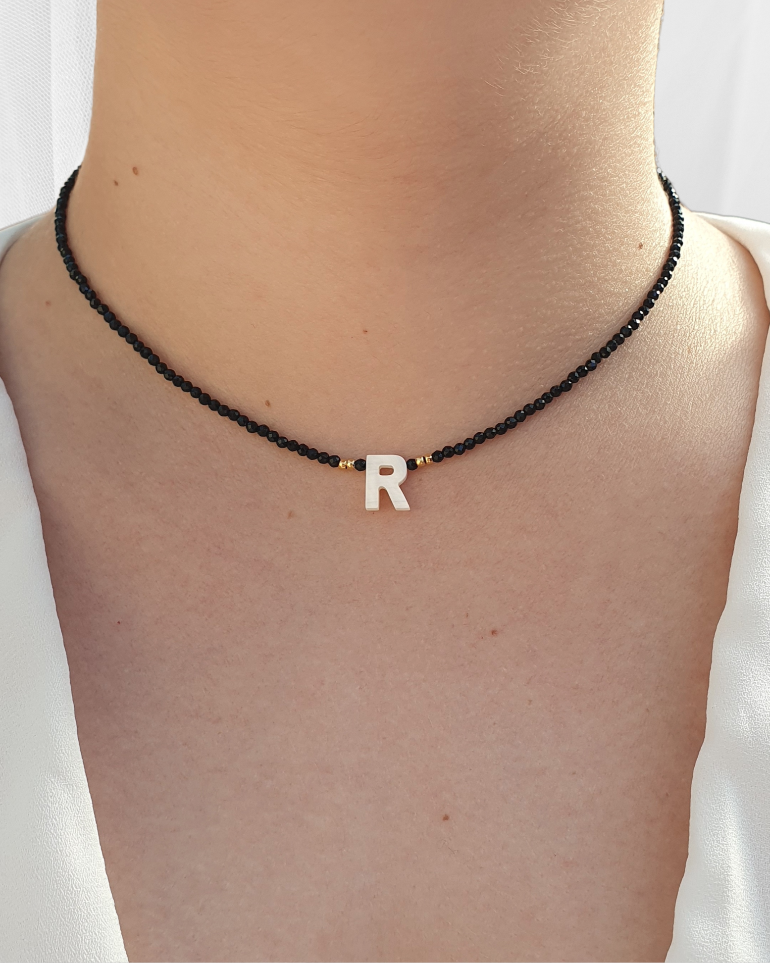 A letra em madrepérola é o grande destaque, adicionando um toque sofisticado, perfeito para personalizar seu estilo ou para presentear.